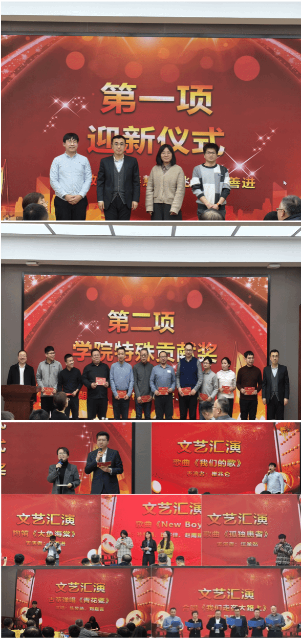 述职述廉大会后,“物探前沿骏马跃,理育英才远志承”2026年新年年会拉开帷幕。本次年会由学院党委办公室纪丹红老师和学院学生工作办公室张弛老师主持。年会上,学院举行了温馨的新教师入职欢迎仪式,展现了物理学院大家庭对新生力量的关怀与期待。随后的才艺表演环节精彩纷呈,现场气氛欢快祥和,充分展现了全院教职工积极向上的精神风貌。