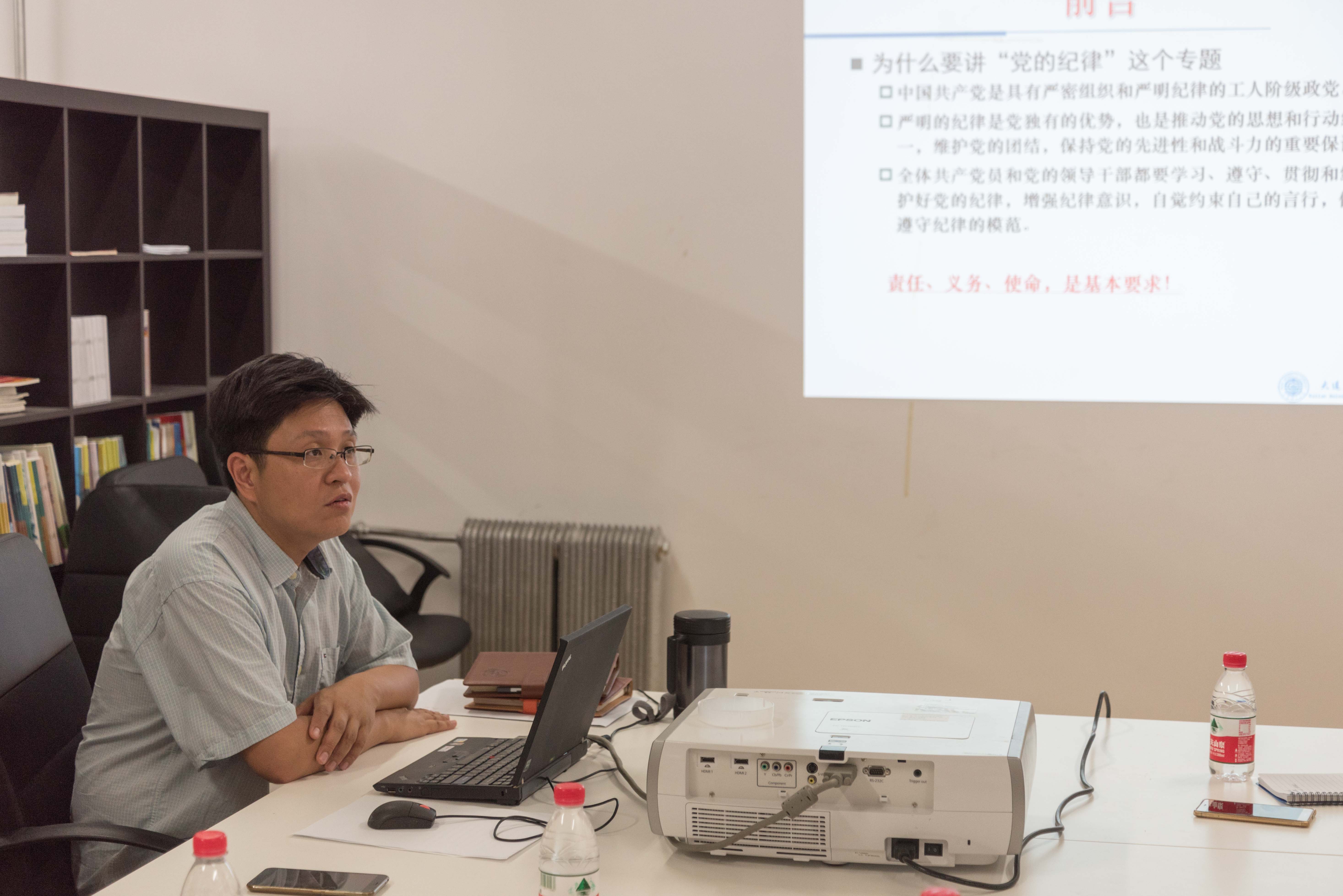 从领导干部专题讲座到退休教授返院交流,再到教育基地实地参观和红色影片集体观赏,物理学院将积极拓展党课内容与形式作为促进党员学习教育入脑入心的主要方法。结合学校关于组织党史和党的建设专题学习研讨的相关要求,学院党委以政治生活会为契机,面向学院党政领导、各师生支部开展《党纪的历史与现实》专题党课,由学院党委书记常亮同志主讲,细说党纪的科学内涵、历史发展、特征作用、具体内容,结合热播剧《人民的名义》,生动阐述党纪与国法之间的重要关系。