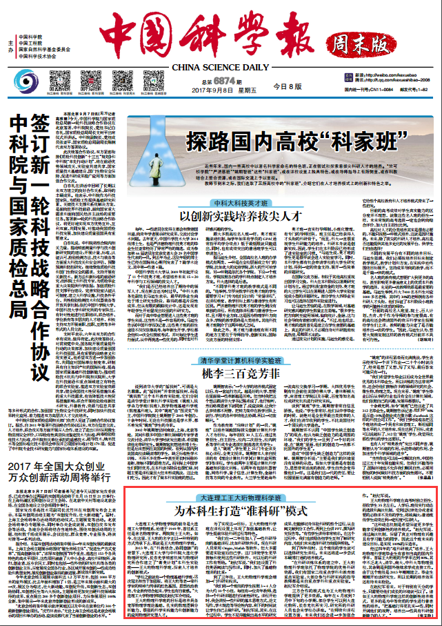 “在科研训练体系的建立中,王大珩物理科学班依托了物理学院的优势科研资源。我们有国家二级重点学科和教育部重点实验室,大部分参与科研实践的指导教师都是来自重点学科和重点实验室。”赵纪军介绍说。