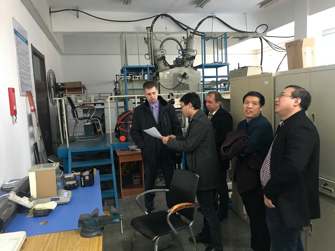 11月21日,白俄罗斯国立大学物理学院院长M. Tivanov,激光物理和光谱学系主任A. L. Tolstik教授以及中白学院白方副院长M. Denis一行3人来到物理学院参观实验室并进行调研。物理学院副院长于长水、中白学院那晓及相关实验室负责人陪同参观交流。
