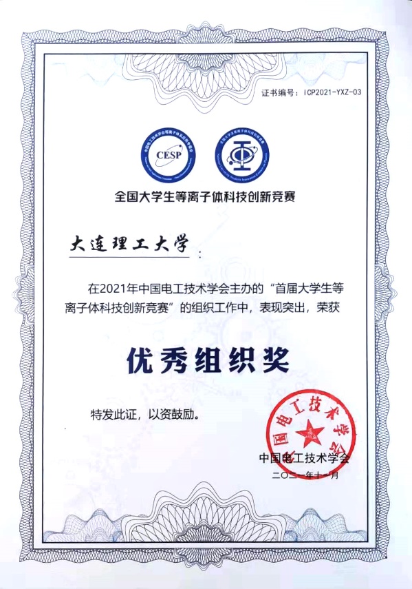 2021年12月12日,由中国电工技术学会主办,河海大学、南京工业大学共同承办的首届全国大学生等离子体科技创新竞赛落下帷幕,大连理工大学参赛队伍获得竞赛特等奖1项、一等奖2项、二等奖3项、三等奖5项,同时我校获优秀组织单位奖。其中,物理学院本科生董其毅等同学共同完成的作品《低气压射频容性耦合等离子体源COMSOL仿真及实验验证》(指导教师:张莹莹、宋远红)荣获特等奖。
