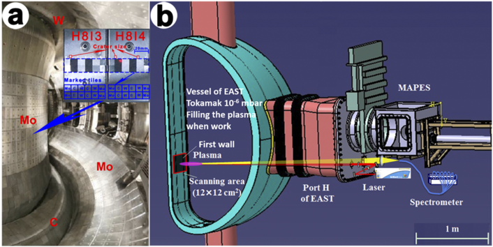 目前课题组所首次建立的全超导大型托卡马克EAST原位LIBS壁诊断系统已成功应用于EAST第一壁元素的实时在线检测,此外与中核集团HL-2A/2M托卡马克、德国马普学会W7-X仿星器合作的LIBS壁诊断研究合作项目也正在开展中。这些工作极大提升了我校在大型超导聚变装置第一壁元素原位诊断领域和聚变等离子体与材料相互作用研究领域的国内外影响力,并为未来聚变反应堆ITER、CFETR等第一壁元素原位在线诊断提供了充分的工作基础及数据支撑。