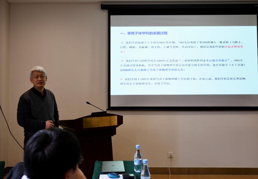 2020年1月11日,大连理工大学物理学院等离子体物理学科发展研讨会顺利召开,等离子体物理学科教职工参加了会议。会议开始物理学院院长赵纪军教授宣读“关于物理学院等离子体科学与技术中心人事调整的决定”, 物理学院党委书记王正汹教授兼任中心主任,高飞教授、桑超峰教授、冯春雷高级工程师分别任中心副主任,王奇高级工程师和张钰如副教授为中心秘书。王正汹教授作为中心主任进行发言,他简单介绍了中心换届的背景,明确了中心新的领导班子的任务,并表态将会通过中心凝聚整个学科力量,促进学科发展。高飞教授对等离子体中心近十年的状况进行了详细汇报,包括中心成员年龄构成、中心承担科研项目数据、中心各课题组实验室分布以及现今面临的主要问题等。