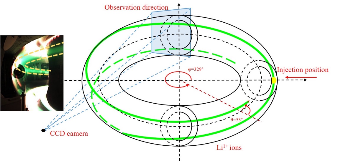 图1 弹丸粒子空间分布和EAST装置上CCD摄像机照片的对比图