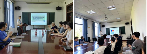近年来,在光晶格中调控拓扑能带取得重要进展,使得在光晶格系统中有望实现分数陈绝缘态。王波涛博士介绍了一个可在实验上实现的光晶格体系,详细探讨了分数陈绝缘态的稳定条件和探测分数激发的条件。还介绍了通过调控系统和环境的构型,可以在光学平底势阱(optical box trap)中制备和操控拓扑态。该方法为研究超冷量子物质(包括强相关和拓扑相)提供了一条新途径。物理学院教师和研究生与王波涛博士就感兴趣的学术问题进行了充分讨论,本次报告会圆满完成。