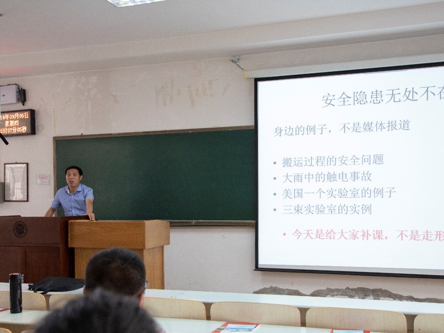 首先,张弛老师就学院沿革与科研实力、党建优良传统、研究生工作管理模式、学院研究生就业前景与就业技巧等方面做了报告并对今后研究生的日常规范提出了要求;而后,丛书林教授以“研究生的思维、学习和科研方法”为题,结合多年教育经历,勉励研究生新生深入钻研科学问题,提高科研能力,最终取得优异的科研成果;最后,张家良教授以一个又一个身边的实例,要求全体研究生新生遵守实验室守则,注重实验室安全。