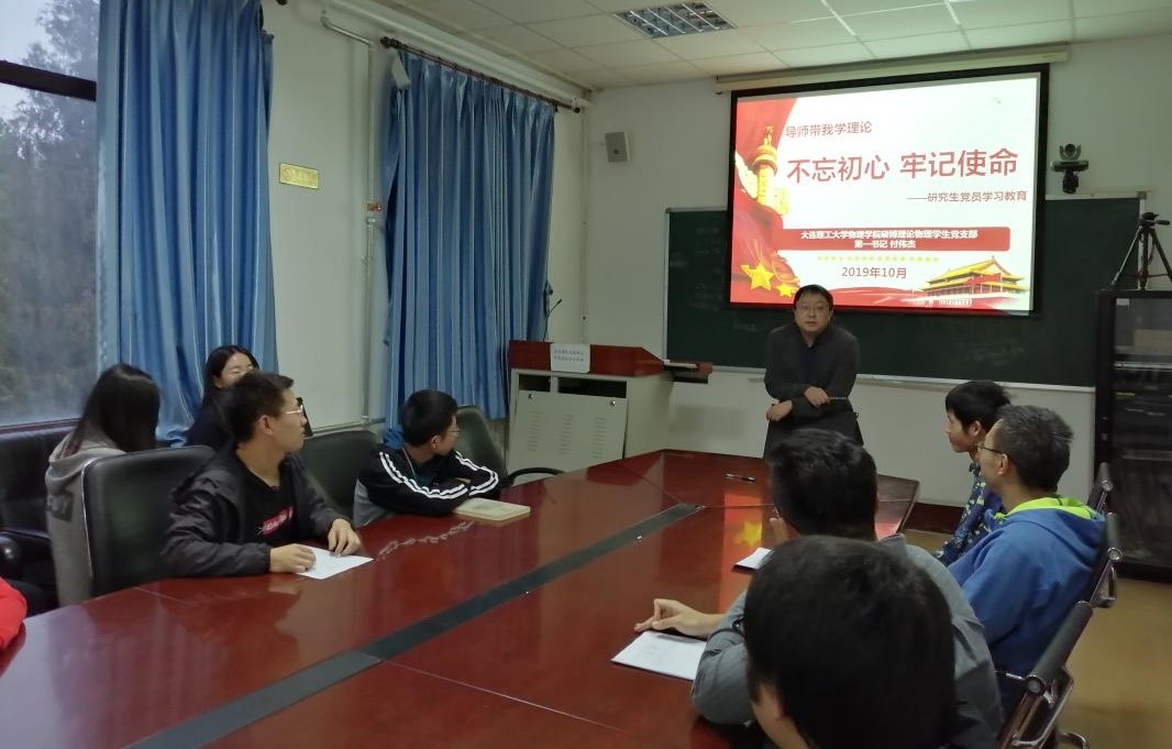 为了深入贯彻落实“不忘初心、牢记使命”主题教育“守初心、担使命,找差距、抓落实”的总要求,2019年10月16日下午,物理学院硕博理论物理学生党支部在物理楼425会议室开展“导师带我学理论”研究生党员主题教育活动。会议由理论物理学生党支部书记李星利主持,由支部第一书记付伟杰老师讲述其在海外留学后,如何保持初心,学成后回国发展的过程。支部党员,发展对象,积极分子和团员代表等参加了学习。