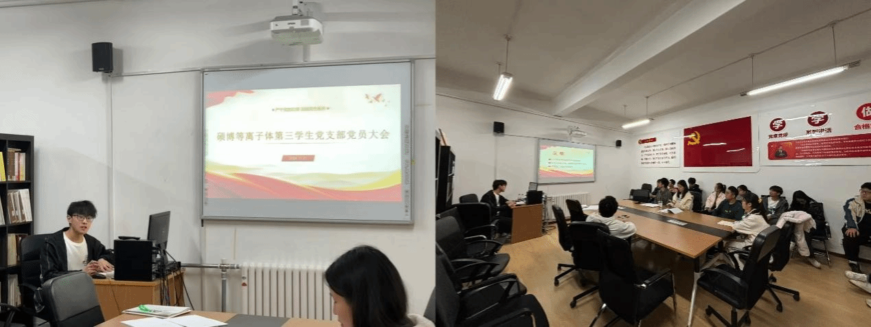 为了深入学习和贯彻党的二十届三中全会精神,切实提升支部党员的政治素养和理论水平,增强党支部的凝聚力,物理学院硕博等离子体第三学生党支部于2024年11月21日在物理楼422室成功召开党员大会。会议内容主要包括讨论接收预备党员、讨论和表决预备党员的转正问题以及学习专题党课。会议由党支部书记高子豪同志主持,支部全体党员和部分群众参会。