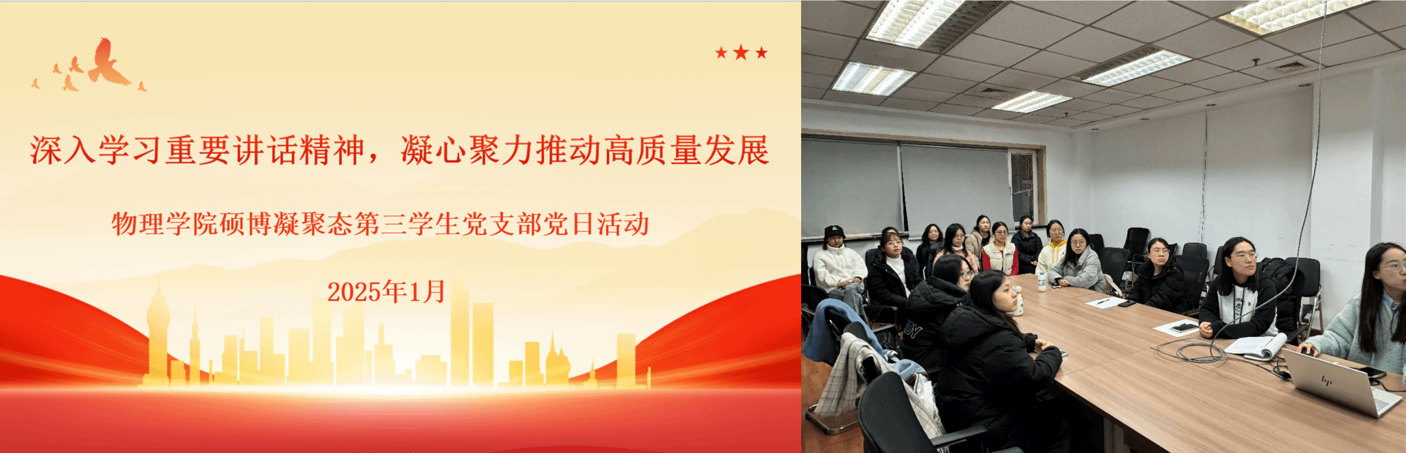 为深入学习习近平总书记在中央经济工作会议上的讲话精神,并结合中国共产党辽宁省第十三届委员会第八次全体会议公报,进一步凝聚支部力量,增强全体党员的政治意识、责任担当意识和创新发展意识。物理学院硕博凝聚态第三学生党支部于1月6日晚6:30在科技园510会议室顺利召开“深入学习习近平总书记重要讲话精神,凝心聚力推动高质量发展”主题党日活动。本次活动由党支部书记赵博同志主持,支部全体党员参加。