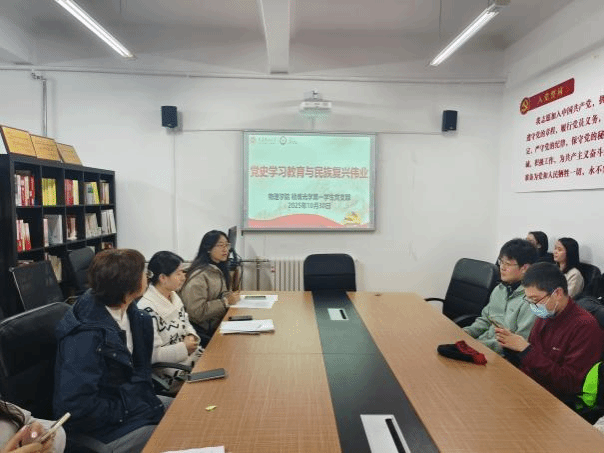 为深化党员集中培训成效,深刻领会谢春涛同志“中国共产党与中华民族伟大复兴”主题教育专题党课精神,进一步从百年党史中汲取智慧和力量,物理学院硕博光学第一学生党支部于2025年10月30日18:30在物理楼422会议室召开主题研讨会,围绕“党史学习教育与民族复兴伟业”主题进行深入研讨。本次会议由党支部书记吕拓同志主持,并邀请物理学院党委副书记于艳敏老师莅临指导。
