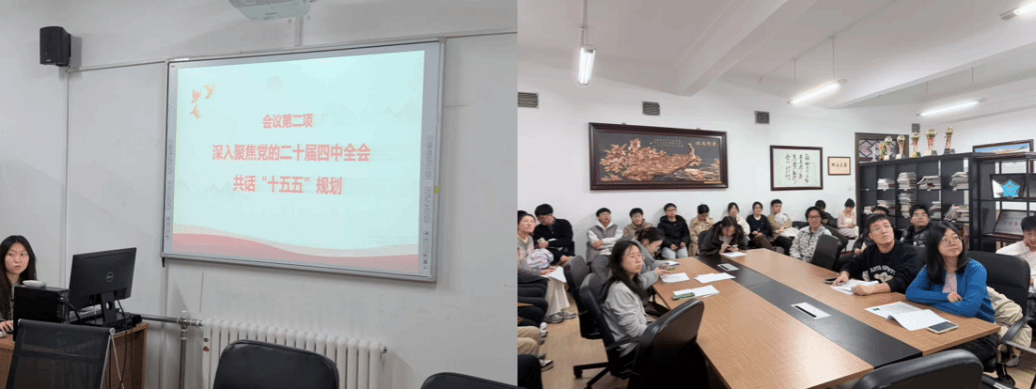 会议伊始,王瑛琪同志简述硕博等离子体第二学生党支部的基本情况,随后带领全体党员集中学习了党的二十届四中全会精神,并对《中华人民共和国国民经济和社会发展第十五个五年规划纲要》(即“十五五”规划)进行了深入解读。与会党员一致认为,“十五五”规划是衔接2035年基本实现社会主义现代化目标的关键五年部署,具有重要的战略意义。规划坚持党的全面领导、人民至上、高质量发展等基本原则,旨在推动科技自立自强、全面深化改革、社会文明提升、人民生活改善、美丽中国建设与国家安全的全面进步。党员们结合科研实际,就“科技与产业创新”“人工智能赋能新型工业化”等议题展开热烈讨论。