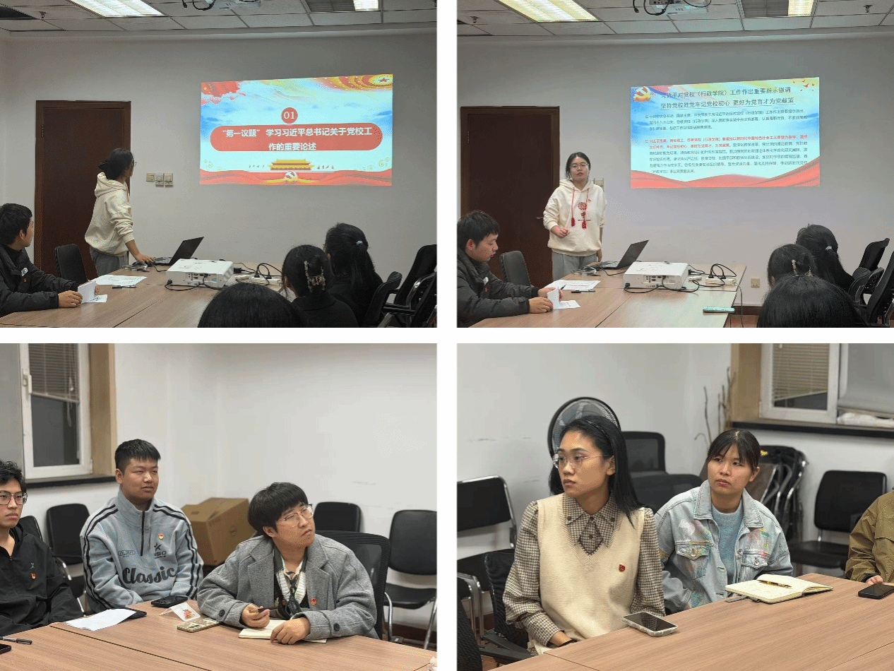 会议第一项,开展“第一议题”学习。由党支部书记都亭利同志领学习近平对党校(行政学院)工作作出重要指示。习近平强调,新征程上,各级党校(行政学院)要坚持以新时代中国特色社会主义思想为指导,坚持党校姓党,牢记党校初心,更好为党育才、为党献策。都亭利同志结合党支部工作实际,对其进行了深入解读。会议强调,这是习近平总书记对党校工作作出的重要指示,我们应该从中汲取智慧。作为党支部委员会委员,要按时传达部署学校、学院党建工作要求,紧扣主题主线,加强党的创新理论学习;作为党员,做事不能忘本忘祖,要在思想上、政治上、行动上自觉同党中央保持高度一致,这是我们每一位党员在自身工作和学习中必须牢牢把握的政治方向。全体党支部成员要深刻领会习近平总书记重要指示的丰富内涵和实践要求,将其内化于心、外化于行,不断提高政治判断力、政治领悟力、政治执行力。要坚持用党的创新理论武装头脑,筑牢信仰之基、补足精神之钙、把稳思想之舵,做习近平新时代中国特色社会主义思想的坚定信仰者和忠实实践者。会议要求,全体党员要将学习成果转化为推动科研工作的强大动力,积极担当作为,不折不扣贯彻落实。