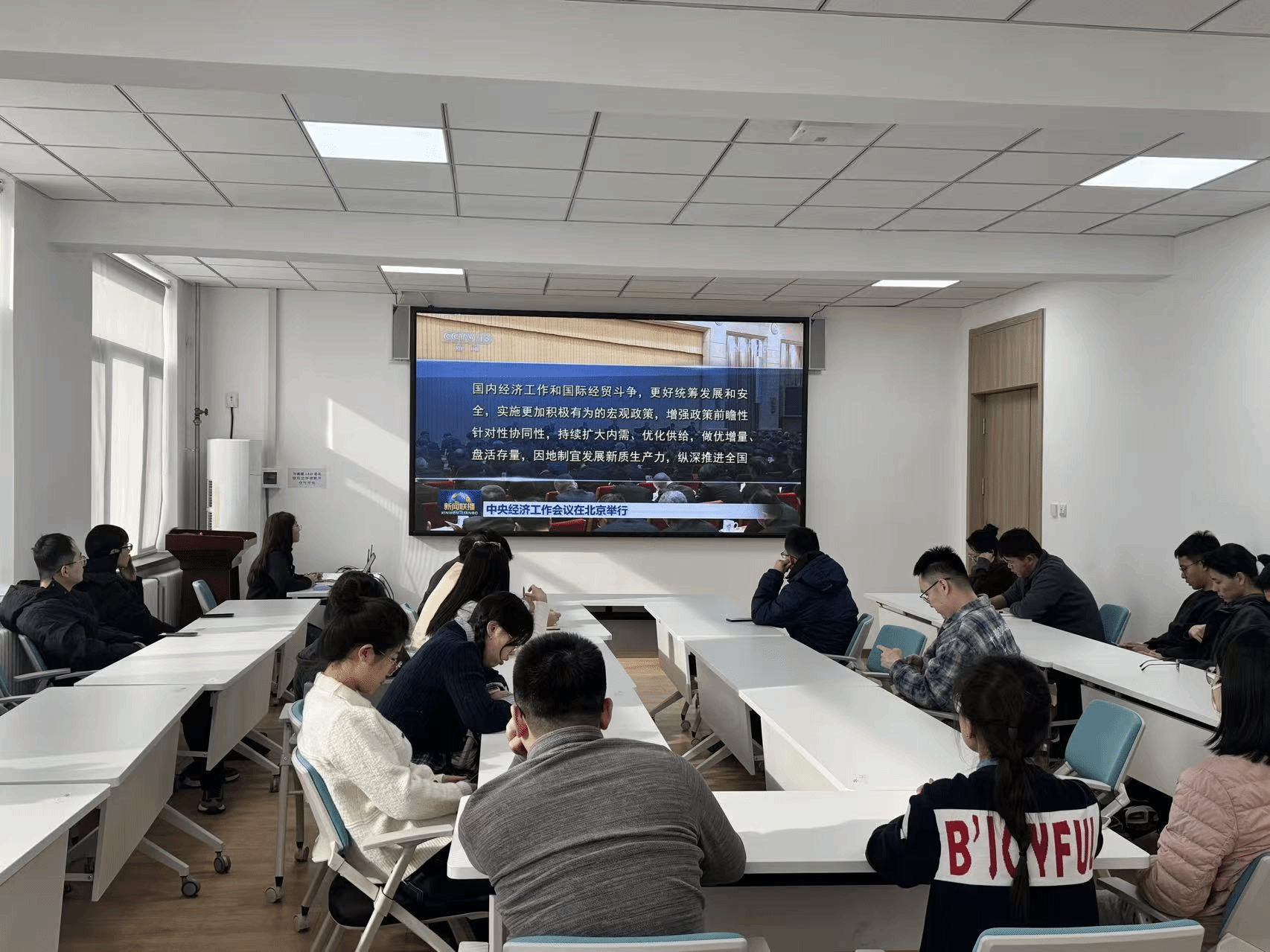 在第二项议程中,全体党员集体学习2025年中央经济工作会议精神。本次学习紧扣会议提出的“要坚持稳中求进、提质增效”“坚持创新驱动 加紧培育壮大新动能”等核心部署,结合等离子体物理学科在新能源、新材料等领域的应用前景展开讨论。党员们纷纷表示,要深刻把握国家经济发展导向,将个人科研方向与国家战略需求紧密结合,以科技创新助力高质量发展,让青春奋斗扎根在祖国需要的地方。