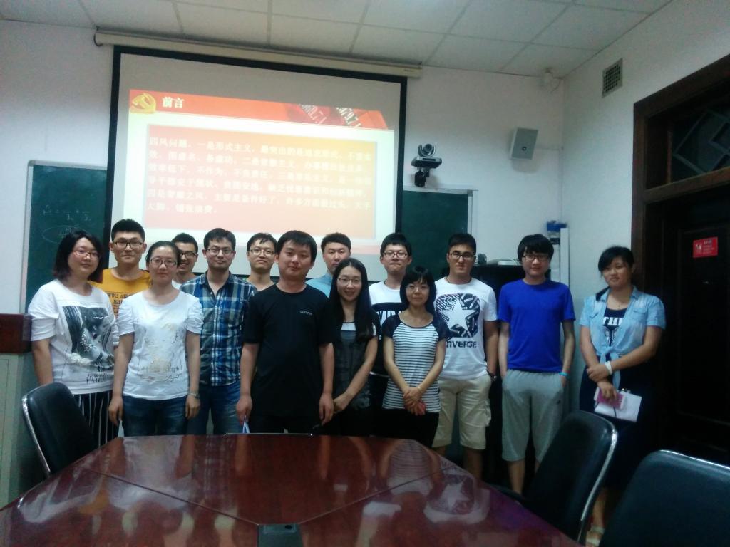 2015年7月7日18时,物理与光电工程学院光工硕博02学生党支部响应学院号召,在系楼425教室举行第二期“研究生党员上讲台”特色活动。支部指导老师周新磊老师以及党支部成员参加了本次活动。本期活动由刘秀鑫主持召开,活动旨在鼓励研究生党员走上讲台,发表自己的看法,共同学习和探讨当下热点问题和祖国的前进政策和方向。