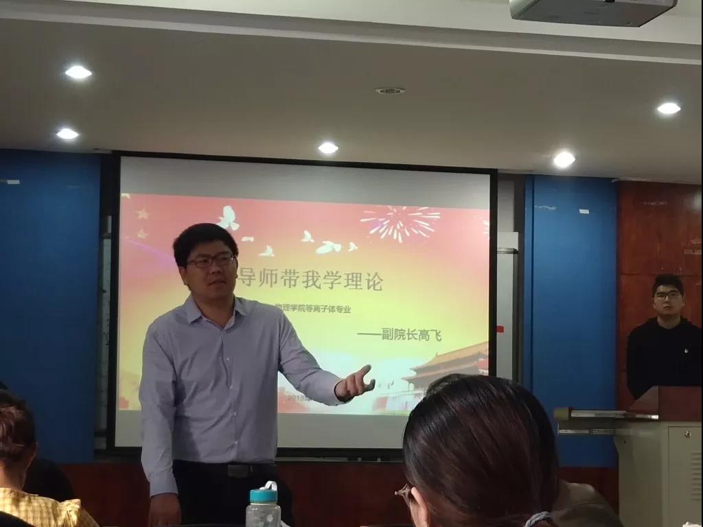 为深入贯彻落实“不忘初心、牢记使命”主题教育“守初心、担使命,找差距、抓落实”的总要求,进一步加强对基层党组织学习教育工作的指导,10月22日下午,在物理学院322会议室,等离子体物理专业博士生导师高飞副教授为等离子体专业下的三个研究生党支部上了一堂题为“不忘初心跟党走,牢记使命做先锋”的主题党课,三个党支部近70名党员聆听了党课。党课结束后高飞老师又牵头开展了“导师带我学理论”主题教育活动,各支部党员同志踊跃参与其中。