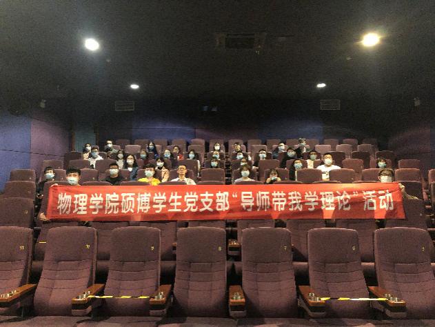 在举国上下隆重纪念中国人民志愿军抗美援朝出国作战70周年之际,为落实上级党组织安排部署,教育党员更深入了解抗美援朝相关知识,营造学习伟大抗美援朝精神的浓厚氛围,培养党员的历史观和责任感,更好地向抗美援朝英雄模范和战士致敬,物理学院硕博原子与生物学生党支部联合硕博理论物理学生党支部、硕博光学学生党支部结合“导师带我学理论”的契机,于2020年10月27日组织支部党员和发展对象走进电影院观看电影《金刚川》,并邀请了原子与分子物理专业研究生导师韩永昌教授和柴硕副教授来参加指导此次活动。