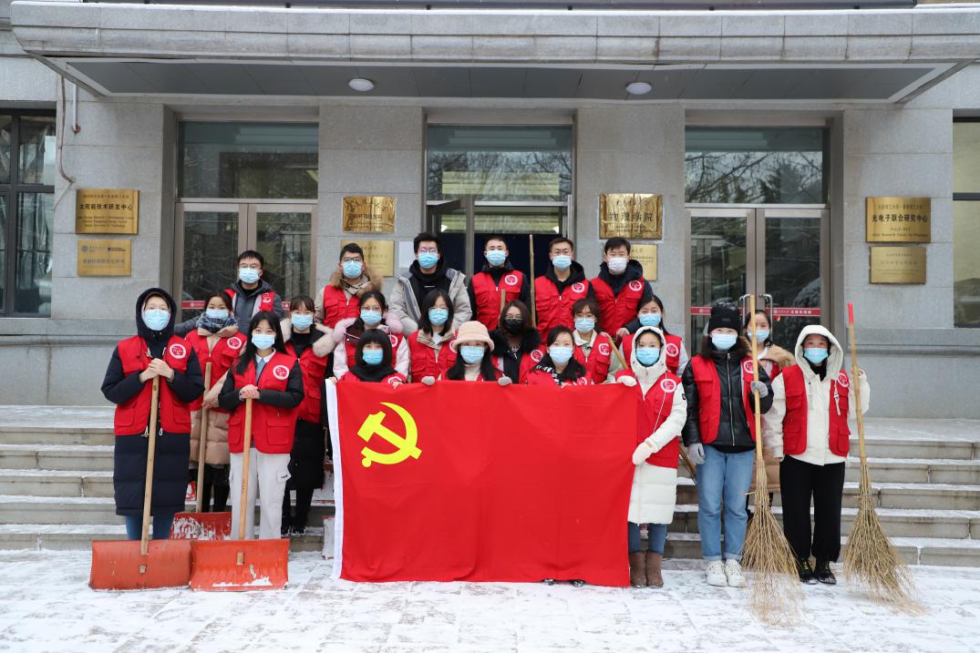 日前,一场暴雪突袭全市,暴雪过后,气温骤降,道路出现积雪和结冰现象,通行受阻。为方便学校师生出行,12月30日下午,硕博等离子体第二学生支部结合“党团共建”,组织支部党员、团员积极开展“扫雪除冰”活动,对物理学院系楼楼前主要路段积雪进行清理。