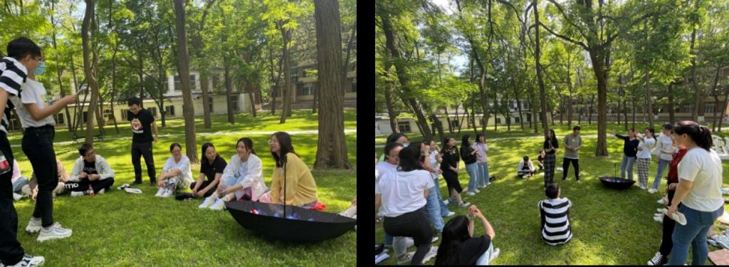 活动在学院东侧的草坪上举行,树荫下近40名同学围坐一圈。活动首先由8名党员、团员分享关于毛泽东、周恩来、邓小平、刘少奇等共和国领袖的党史故事,带领大家领略这些享有崇高威望的卓越领导人、久经考验的共产主义战士们的胆略和睿智。