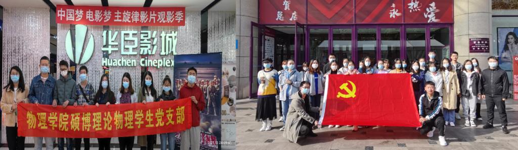 1951年,党中央决定将每年10月25日定为抗美援朝纪念日。为纪念抗美援朝71周年,牢记抗美援朝历史,体会革命先辈之不易,进一步增强和坚定党员的党性意识、宗旨意识,弘扬伟大抗美援朝精神,10月24日上午,物理学院硕博理论物理学生党支部、硕博原子与分子学生党支部、硕博凝聚态学生党支部联合开展主题党日活动,三个支部四十余名党员同志赴影院参加《长津湖》观影活动。
