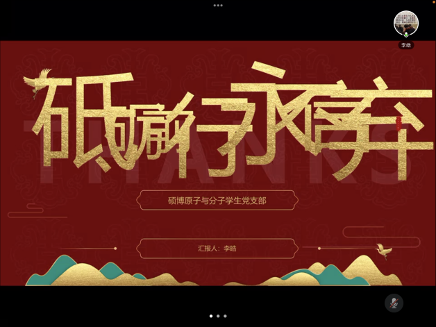 按照大连理工大学党委和物理学院党委的统一部署,硕博原子与分子学生党支部在严格落实疫情防控相关要求的基础上,于2022年3月16日下午,采取线上形式召开组织生活会。会议由支部书记于小芳同志主持,全体党员参加,化工学院党委副书记刘阅老师、物理学院副院长韩永昌教授到会指导。