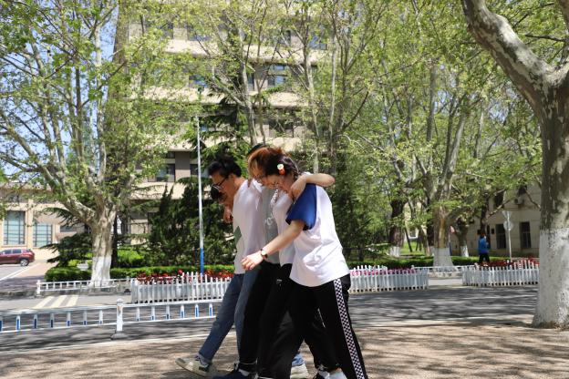 比赛的最后一项为“五人六足”,在规定路段内所用时间最少的队伍获胜。绳子绑住的不只是脚,更是并肩作战的心,“一二一二”,随着大家口中整齐划一的口号,终点也越来越近。