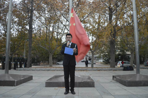 然后由管理与经济学部的同学进行国旗下讲话。一路走来,父母一直陪在我们身旁,日夜操劳奔波。“谁言寸草心,报得三春辉”,现如今我们已经长大,应该对父母表达我们的感恩之情。这场讲话晓之以理,动之以情,感恩这个词语已深入到现场的每位同学心中。下一步,主持人让大家回去之后,为远方的父母发出一条感谢的短信,给父母一声爱的问候。最后在一片温暖的气氛中,升旗仪式圆满结束。