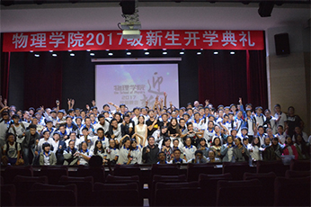 金秋送爽,丹桂飘香。为欢迎物理学院2017级新生的到来,并让新生们更快更好的融入物理学院的大家庭,9月29日下午6点,物理学院2017级开学典礼暨迎新晚会在综合教学二号楼B301隆重召开。本次迎新晚会由院文化部承办。出席本次活动的嘉宾有物理学院院长、博士生导师赵纪军,物理学院党委书记常亮,党委副书记兼副院长杨木,物理学院副院长、博士生导师陈茂笃,物理学院副院长、博士生导师徐立昕,光电信息科学与工程专业负责人孙长森,中白学院综合办公室主任武恒,教师代表刘永新,学院团委书记兼15级辅导员纪丹红,17级辅导员龙泽等。