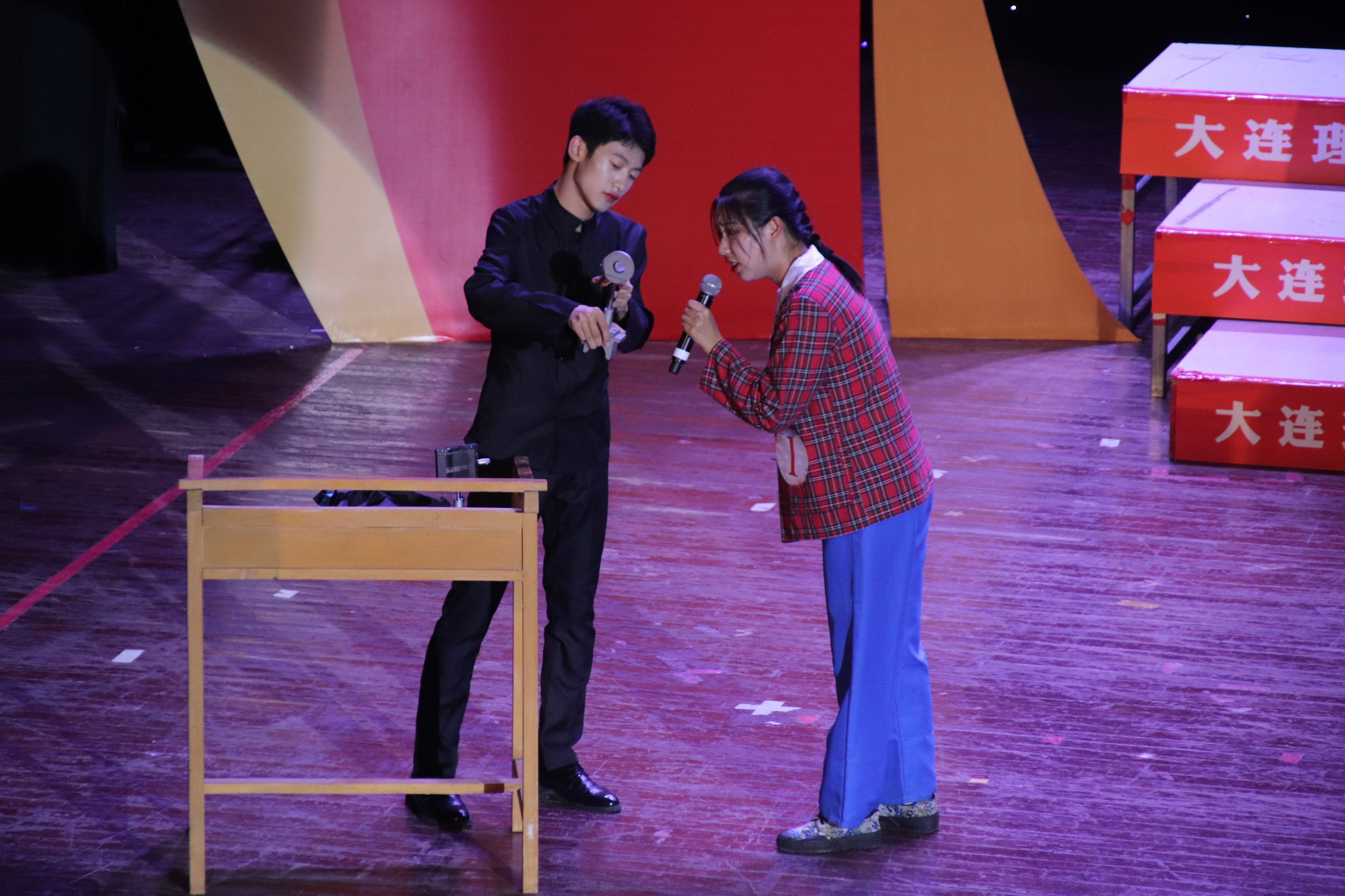 物大珩1801团支部的演出,从我院第一任系主任、两院院士、“两弹一星功勋奖章”获得者、“中国光学之父”王大珩先生的故事拉开序幕。硝烟散去,百废待兴,王大珩先生怀揣着为建设新中国培养应用型人才的理想,直通通地闯入大连工学院屈伯川院长的办公室,因此,学院建设全新的应用物理系。但办学绝不是想建立一个应用物理系就能建成这么简单的,没有完备的实验教室、没有精密的实验器材,说什么都是徒劳。可王大珩先生,带领着当时物理系的学生,日夜奔波、不辞艰辛,淘着的是旧货市场的破铜烂铁,做着的却是中国的第一片光学玻璃、第一台电子显微镜和第一台激光器!女学生的一句“主任!我懂,我不怕苦!我和您一起去!”,将初代物理系学子们血液里流淌的红色基因表现得淋漓尽致,也将演出推向高潮。
