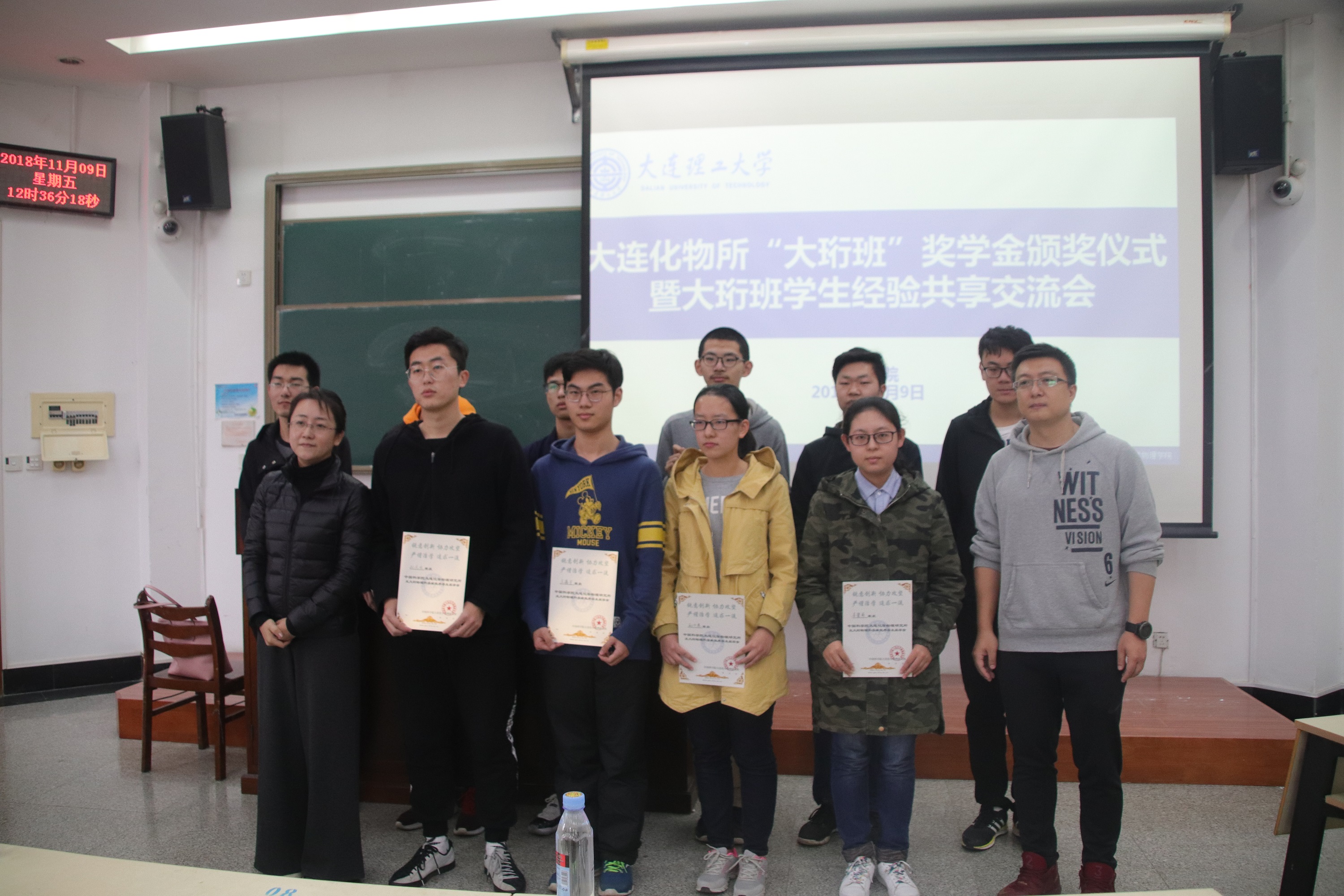 大连理工大学王大珩物理科学班(大珩班)是中国科学院大连化学物理研究所(大连化物所)与我校为联合培养科研型人才而开设的创新实验班。为更好地建设大珩班、促进大珩班和大连化物所之间的合作、加强大珩班各年级学生之间的交流,大连理工大学物理学院于11月9日中午12:30在综合教学楼一号楼358教室召开“大连化物所‘大珩班’奖学金颁奖仪式暨大珩班学生经验共享交流会”。本次会议由物理学院团委书记纪丹红主持,邀请大连化物所研究生工作部副主任熊川男给获奖学生颁发奖学金奖状。