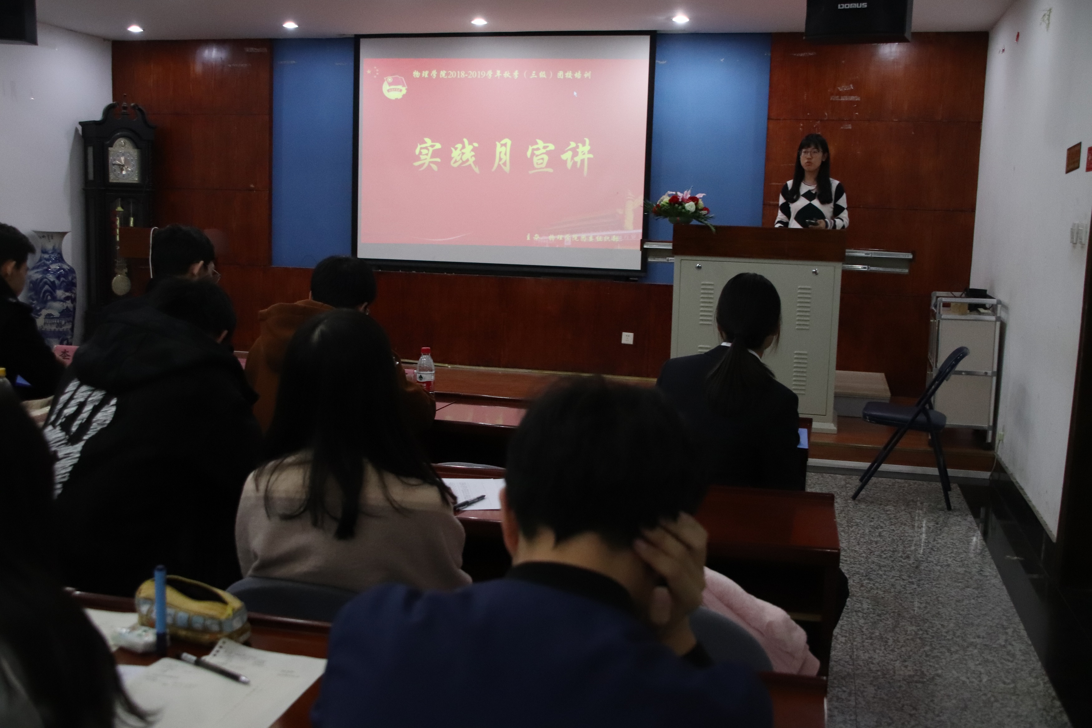 为推进实践月主题活动顺利开展,并响应学校号召,积极建设活力团支部,我校物理学院于11月19日晚上六点在物理系楼322教室开展2018-2019学年秋季第四期团校培训。出席本次培训的嘉宾有学生会主席兼团委副书记边于,团委常务副书记刘禹君,团委实践部部长李睿,团委组织部部长何浩。