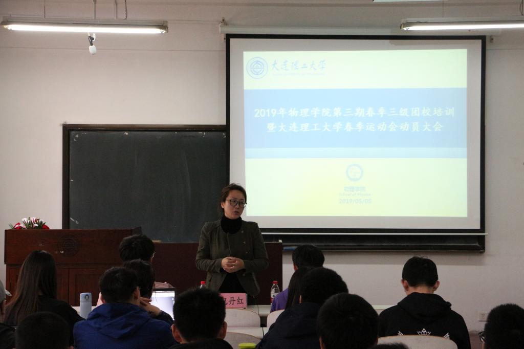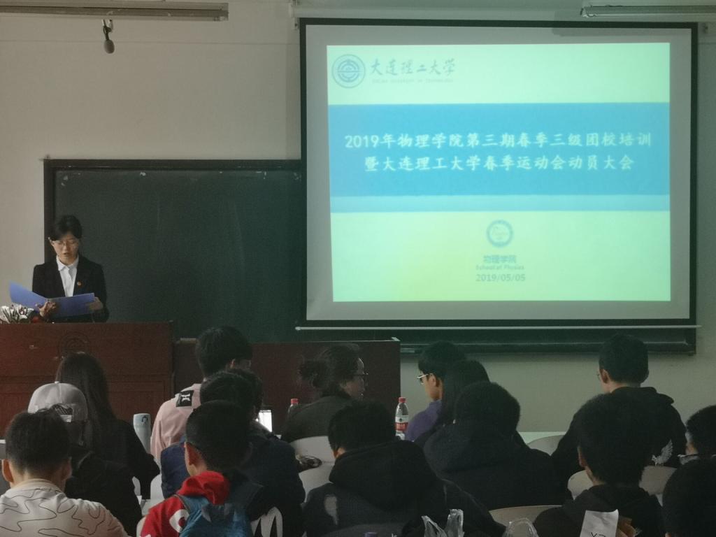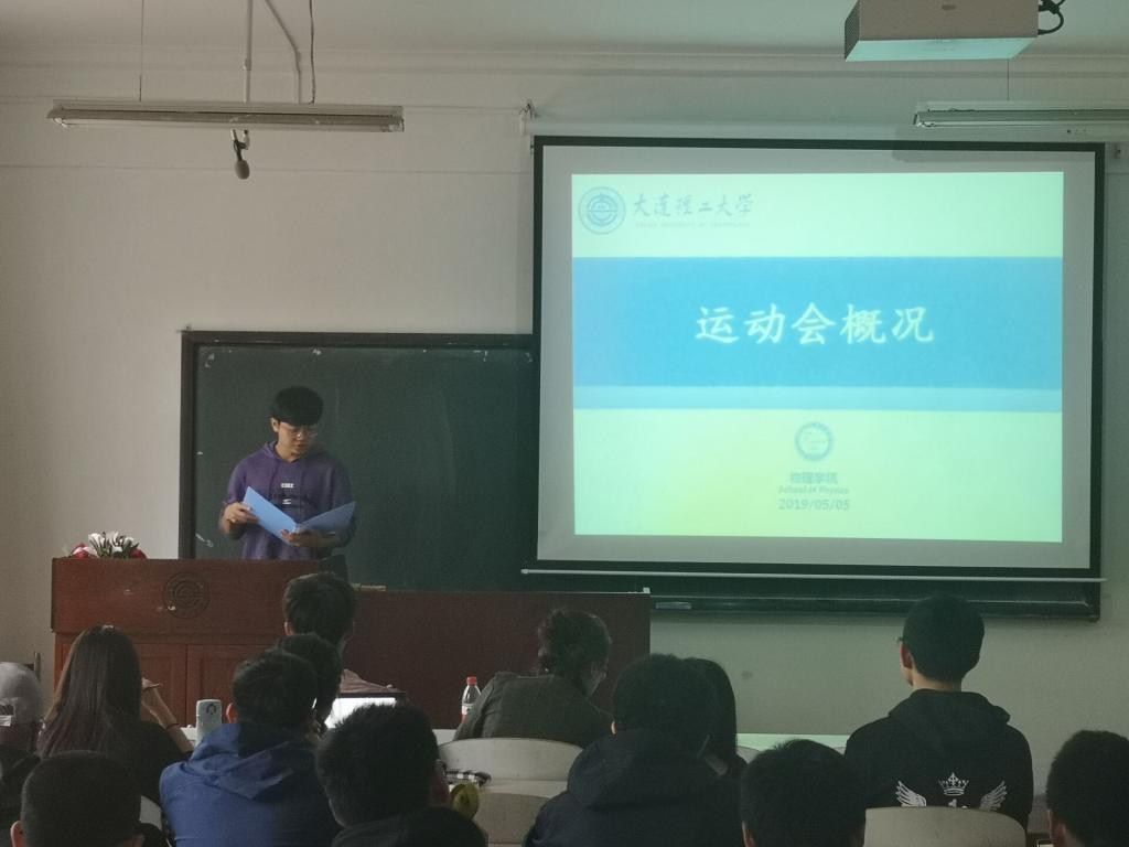 2019年5月5日中午12点30分,大连理工大学物理学院于机械系楼机112室举行运动员动员大会。本次动员大会到场的嘉宾为物理学院团委书记兼2015级辅导员纪丹红以及学生会主席兼团委副书记边于。