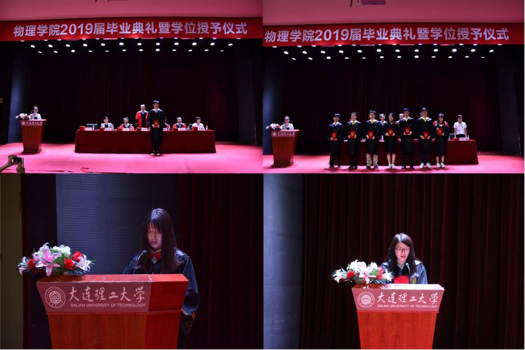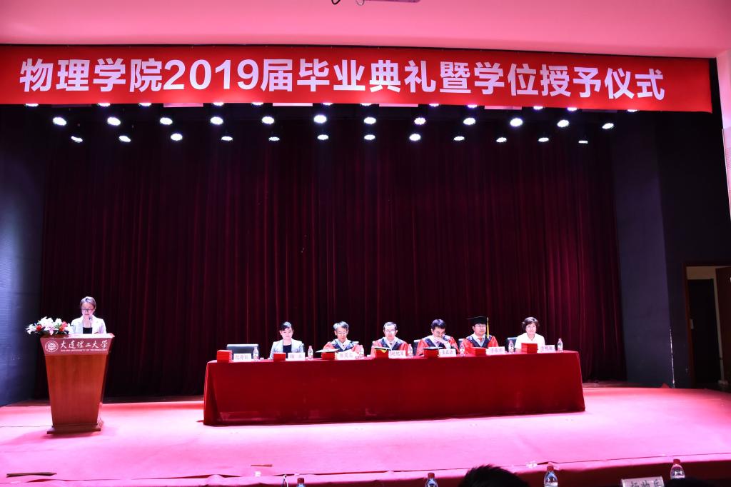 又是一年的毕业季,又一届物院学子即将离开校园,踏上崭新的人生旅途。6月20日下午2点,物理学院2019届毕业典礼暨学位授予仪式在综合教学二号楼B301百川报告厅成功举行。到场的嘉宾有物理学院院长、博士生导师赵纪军教授,学院党委书记、博士生导师王正汹教授,副院长、博士生导师陈茂笃教授,副院长、博士生导师于长水教授,副书记兼副院长、纪委书记杨木老师,副书记兼副院长于艳敏老师,学生办主任兼团委书记纪丹红老师,组织员兼2016级辅导员佟西原老师,研究生辅导员张弛老师,2018级辅导员杨帅兵老师,以及15级所有本科、硕士、博士毕业生和部分学生家长。