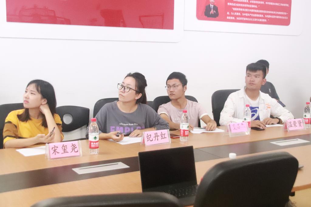 出席此次次答辩的评委有物理学院团委书记、2019级辅导员纪丹红老师,物理学院团委常务副书记宋玺尧,物理学院团委组织部部长温荣贤,物理学院团委青协会长吴召杰。