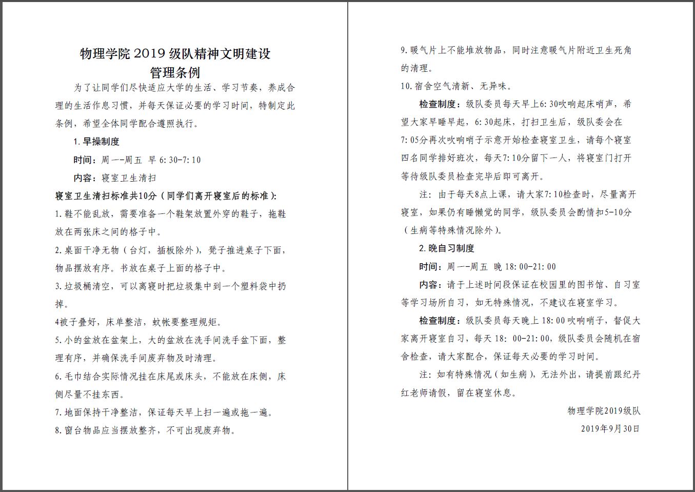 为落实大连理工大学安全教育活动月的号召,物理学院将传承性的精神文明建设制度继续发扬,结合安全教育的初衷,设计早操和晚自习制度,为更好地保证大一学生身心安全保驾护航。这是具体的制度条例。
