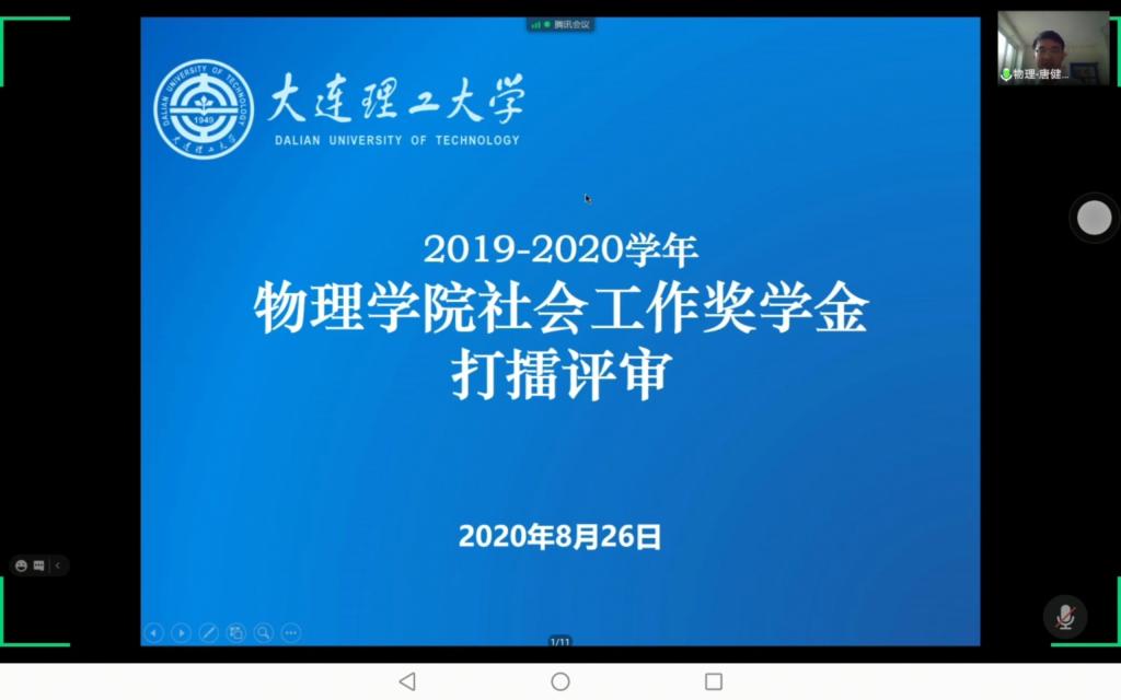 2020年8月26日上午9时,物理学院社会工作奖学金线上答辩会顺利举办。出席本次会议担任评委的嘉宾有:物应1901班思政班主任、体育场馆中心主任张磊老师,物理学院党委副书记、副院长、纪委书记周福良老师,物大珩1801班专业班主任、大学物理教学中心副教授于杰老师,物大珩1801班思政班主任、学校宣传部网络宣传科科长许剑老师,物应1801班专业班主任、纳米光电技术研究所副教授荆振国老师,物应1801班思政班主任、学校宣传部理论宣传科科长牟霖老师,物应1901班专业班主任、凝聚态物理研究所副研究员周思老师,学院学生工作办公室主任、18、19级辅导员纪丹红老师。17级辅导员唐健璐老师担任本次线上答辩会主持人。