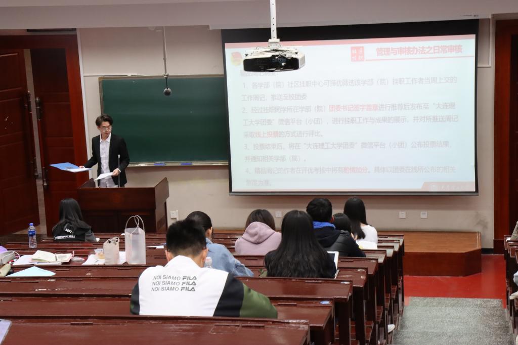 为响应团组织的号召,共青团大连理工大学委员会联合大连市沙河口区、甘井子区团区委开展大学生社区挂职特色服务活动。由物理学院、大连理工大学白俄罗斯国立大学联合学院、经济管理学院联合举办的社区挂职培训宣讲会于10月18日下午15:00在第一教学馆209教室顺利召开。物理学院学生郭沛担任本次宣讲会主持人。
