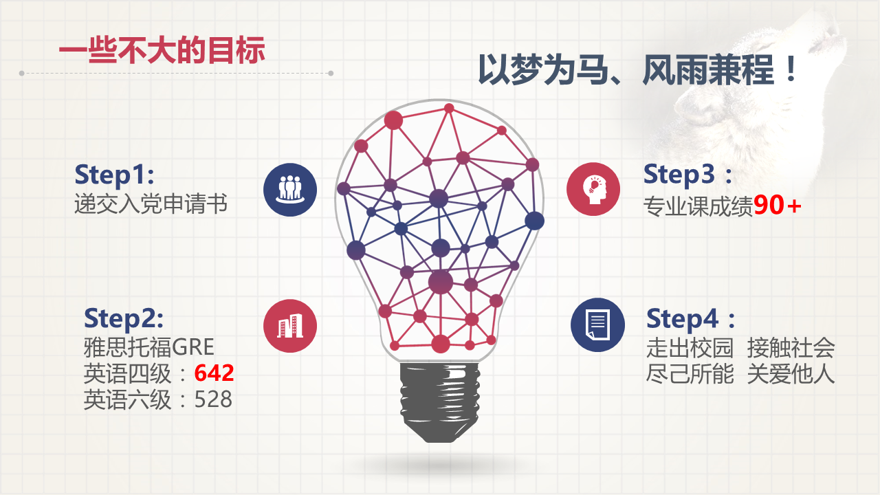 我是来自物理与光电工程学院1506班的李睿意。很荣幸能参与本次答辩。接下来,我将以《风雨兼程铸狼魂》为题,开始我的汇报。