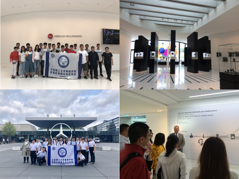 项目为团队安排了五家既有专业对口性更具商业代表性的企业的走访行程。20日,团队前往位于韦茨拉尔的徕卡相机股份公司总部,观赏到徕卡公司发展历史中具有里程碑意义的各型号相机和镜头,以及当前市面上新型镜头的制造工序,让均来自物理学院的团队学生目不转睛。24日,团队到访奔驰汽车公司总部,直观感知企业的创建与成长发展史,在参观冲压车间、车身焊接车间、新能源车间、总装车间等主要产线的过程中深刻感悟顶尖企业对精密与完美的高度追求;随后团队来到卡尔·蔡司股份公司总部,从粗料加工到精细默片,再到镀膜工艺和高温氢氧焰加工工艺,团队学生得以从微观原理和宏观工艺两个角度认知该公司居于世界前列的各项光学制片和探针测量技术,同时蔡司公司的3D点阵成像技术将是继视网膜显像和OLED显示模式之后,显示技术发展的新方向。